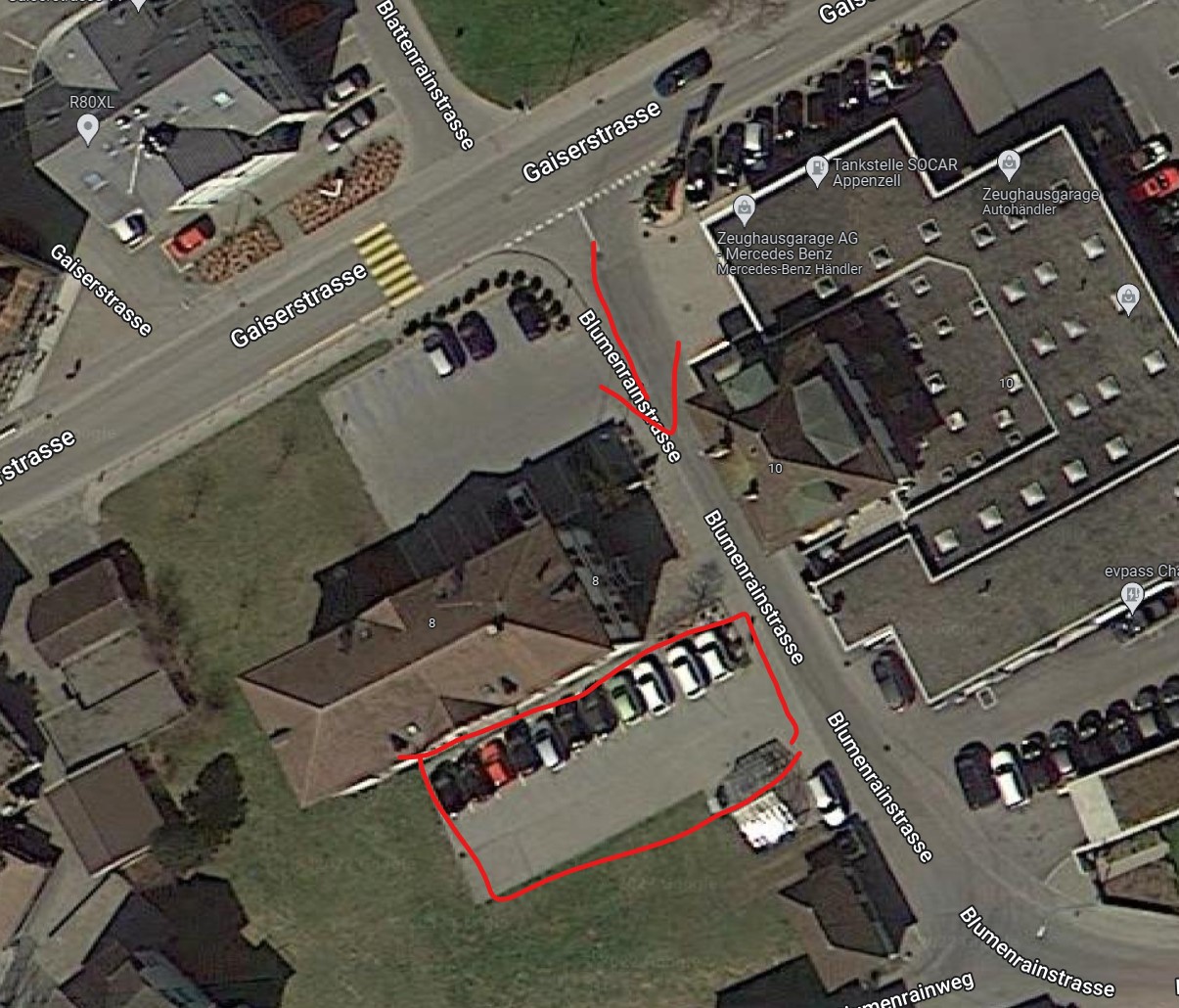 In der Gaiserstrasse in die die Blumenrainstrasse abbiegen (an der Ostseite des Gebäudes und nicht an der Strasse parkieren)